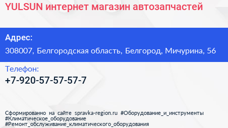 YULSUN, интернет-магазин автозапчастей по адресу 308007, Белгородская область, Белгород, Мичурина, 56 в дальнейшем Организация, размещена в следующих категориях: