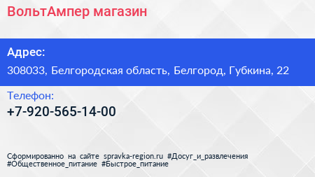 ВольтАмпер, магазин по адресу 308033, Белгородская область, Белгород, Губкина, 22 в дальнейшем Организация, размещена в следующих категориях: