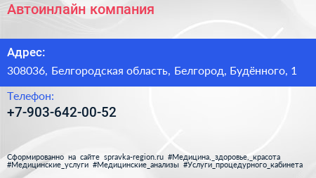 Автоинлайн, компания по адресу 308036, Белгородская область, Белгород, Будённого, 1 в дальнейшем Организация, размещена в следующих категориях: