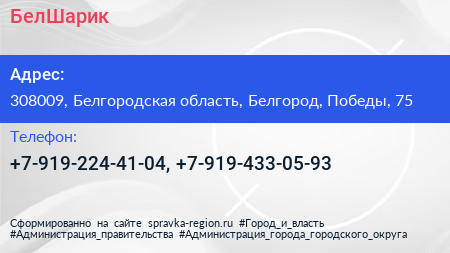 БелШарик по адресу 308009, Белгородская область, Белгород, Победы, 75 в дальнейшем Организация, размещена в следующих категориях: