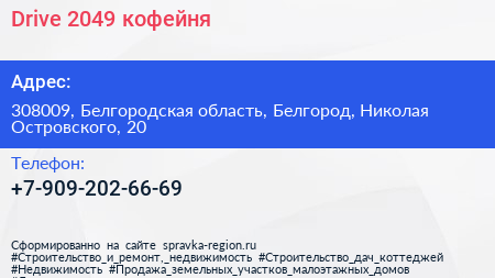 Drive 2049, кофейня по адресу 308009, Белгородская область, Белгород, Николая Островского, 20 в дальнейшем Организация, размещена в следующих категориях: