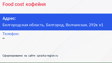 Food cost, кофейня по адресу Белгородская область, Белгород, Волчанская, 292в к1 в дальнейшем Организация, размещена в следующих категориях:
