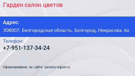 Гарден, салон цветов по адресу 308007, Белгородская область, Белгород, Некрасова, 6а в дальнейшем Организация, размещена в следующих категориях: