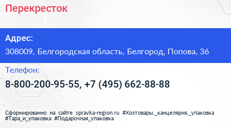 Перекресток по адресу 308009, Белгородская область, Белгород, Попова, 36 в дальнейшем Организация, размещена в следующих категориях: