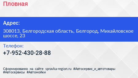 Пловная по адресу 308013, Белгородская область, Белгород, Михайловское шоссе, 23 в дальнейшем Организация, размещена в следующих категориях: