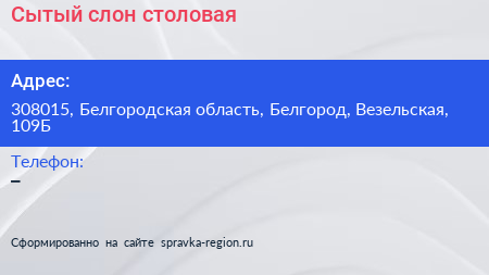 Сытый слон, столовая по адресу 308015, Белгородская область, Белгород, Везельская, 109Б в дальнейшем Организация, размещена в следующих категориях: