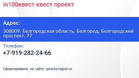 in100квест, квест-проект по адресу 308009, Белгородская область, Белгород, Белгородский проспект, 77 в дальнейшем Организация, размещена в следующих категориях: