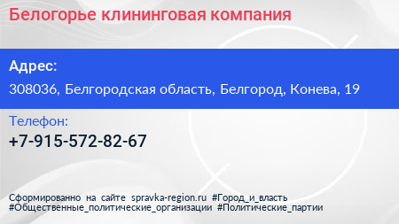 Белогорье, клининговая компания по адресу 308036, Белгородская область, Белгород, Конева, 19 в дальнейшем Организация, размещена в следующих категориях: