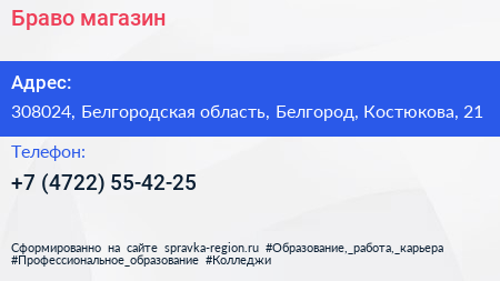 Браво, магазин по адресу 308024, Белгородская область, Белгород, Костюкова, 21 в дальнейшем Организация, размещена в следующих категориях: