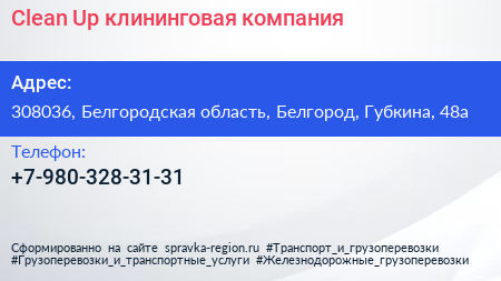 Clean Up, клининговая компания по адресу 308036, Белгородская область, Белгород, Губкина, 48а в дальнейшем Организация, размещена в следующих категориях: