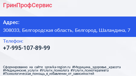 ГринПрофСервис по адресу 308033, Белгородская область, Белгород, Шаландина, 7 в дальнейшем Организация, размещена в следующих категориях: