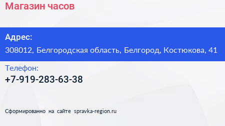 Магазин часов по адресу 308012, Белгородская область, Белгород, Костюкова, 41 в дальнейшем Организация, размещена в следующих категориях: