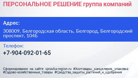 ПЕРСОНАЛЬНОЕ РЕШЕНИЕ, группа компаний по адресу 308009, Белгородская область, Белгород, Белгородский проспект, 104Б в дальнейшем Организация, размещена в следующих категориях: