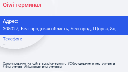 Qiwi, терминал по адресу 308027, Белгородская область, Белгород, Щорса, 8д в дальнейшем Организация, размещена в следующих категориях: