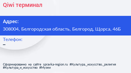 Qiwi, терминал по адресу 308004, Белгородская область, Белгород, Щорса, 46Б в дальнейшем Организация, размещена в следующих категориях: