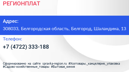 РЕГИОНПЛАТ по адресу 308033, Белгородская область, Белгород, Шаландина, 13 в дальнейшем Организация, размещена в следующих категориях: