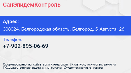 СанЭпидемКонтроль по адресу 308024, Белгородская область, Белгород, 5 Августа, 26 в дальнейшем Организация, размещена в следующих категориях: