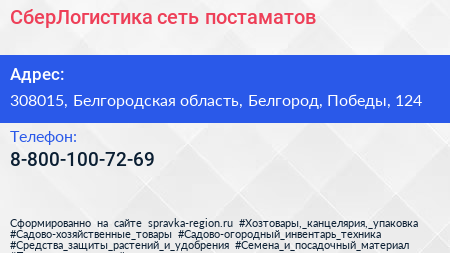 СберЛогистика, сеть постаматов по адресу 308015, Белгородская область, Белгород, Победы, 124 в дальнейшем Организация, размещена в следующих категориях: