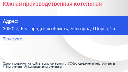 Южная, производственная котельная по адресу 308027, Белгородская область, Белгород, Щорса, 2в в дальнейшем Организация, размещена в следующих категориях: