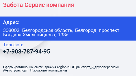 Забота-Сервис, компания по адресу 308002, Белгородская область, Белгород, проспект Богдана Хмельницкого, 133в в дальнейшем Организация, размещена в следующих категориях: