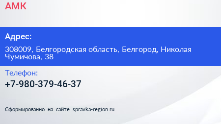 АМК по адресу 308009, Белгородская область, Белгород, Николая Чумичова, 38 в дальнейшем Организация, размещена в следующих категориях: