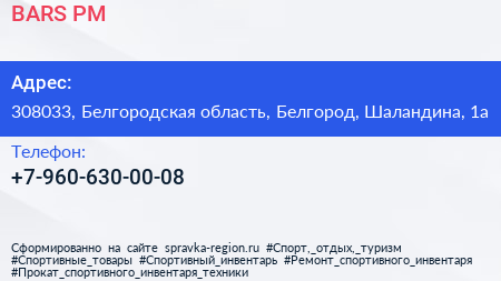 BARS PM по адресу 308033, Белгородская область, Белгород, Шаландина, 1а в дальнейшем Организация, размещена в следующих категориях: