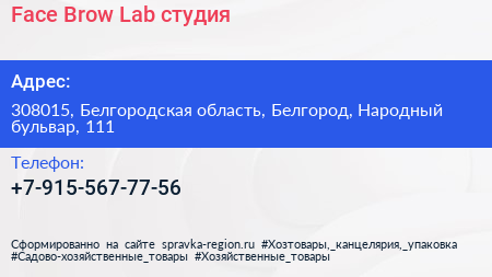Face & Brow Lab, студия по адресу 308015, Белгородская область, Белгород, Народный бульвар, 111 в дальнейшем Организация, размещена в следующих категориях: