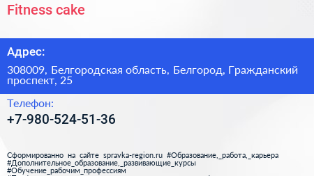 Fitness cake по адресу 308009, Белгородская область, Белгород, Гражданский проспект, 25 в дальнейшем Организация, размещена в следующих категориях: