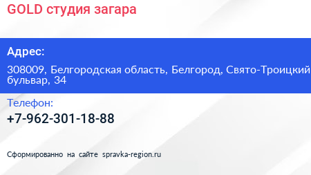 GOLD, студия загара по адресу 308009, Белгородская область, Белгород, Свято-Троицкий бульвар, 34 в дальнейшем Организация, размещена в следующих категориях: