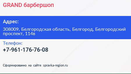 GRAND, барбершоп по адресу 308009, Белгородская область, Белгород, Белгородский проспект, 114в в дальнейшем Организация, размещена в следующих категориях: