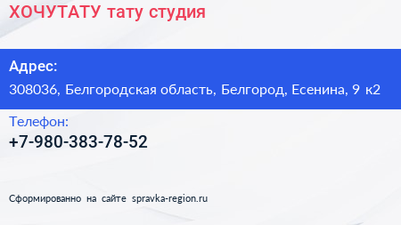 #ХОЧУТАТУ, тату-студия по адресу 308036, Белгородская область, Белгород, Есенина, 9 к2 в дальнейшем Организация, размещена в следующих категориях: