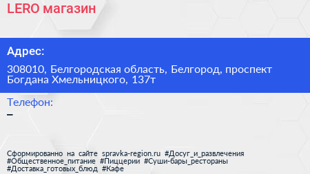 LERO, магазин по адресу 308010, Белгородская область, Белгород, проспект Богдана Хмельницкого, 137т в дальнейшем Организация, размещена в следующих категориях: