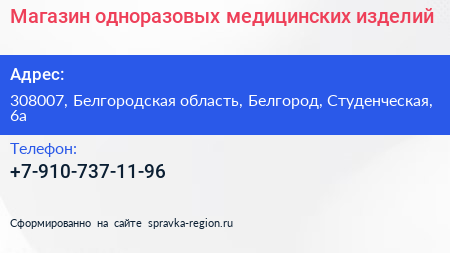 Магазин одноразовых медицинских изделий по адресу 308007, Белгородская область, Белгород, Студенческая, 6а в дальнейшем Организация, размещена в следующих категориях: