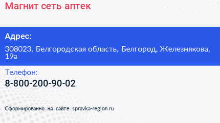 Магнит, сеть аптек по адресу 308023, Белгородская область, Белгород, Железнякова, 19а в дальнейшем Организация, размещена в следующих категориях: