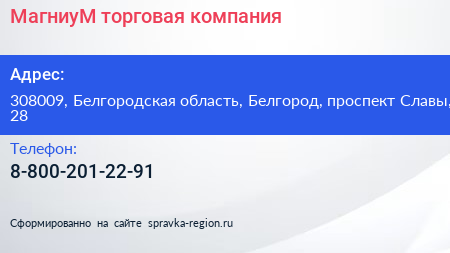 МагниуМ, торговая компания по адресу 308009, Белгородская область, Белгород, проспект Славы, 28 в дальнейшем Организация, размещена в следующих категориях: