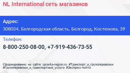 NL International, сеть магазинов по адресу 308024, Белгородская область, Белгород, Костюкова, 39 в дальнейшем Организация, размещена в следующих категориях:
