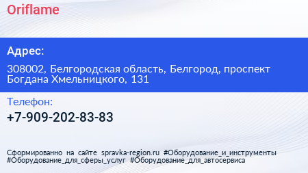 Oriflame по адресу 308002, Белгородская область, Белгород, проспект Богдана Хмельницкого, 131 в дальнейшем Организация, размещена в следующих категориях: