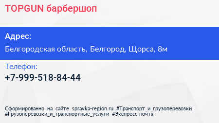 TOPGUN, барбершоп по адресу Белгородская область, Белгород, Щорса, 8м в дальнейшем Организация, размещена в следующих категориях: