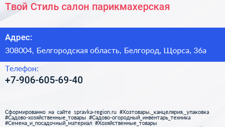 Твой Стиль, салон-парикмахерская по адресу 308004, Белгородская область, Белгород, Щорса, 36а в дальнейшем Организация, размещена в следующих категориях: