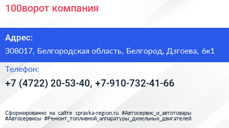 100ворот, компания по адресу 308017, Белгородская область, Белгород, Дзгоева, 6к1 в дальнейшем Организация, размещена в следующих категориях: