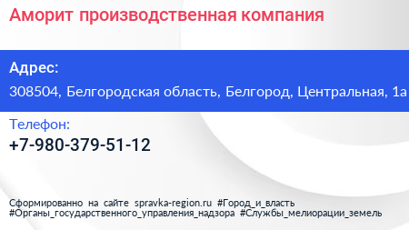 Аморит, производственная компания по адресу 308504, Белгородская область, Белгород, Центральная, 1а в дальнейшем Организация, размещена в следующих категориях: