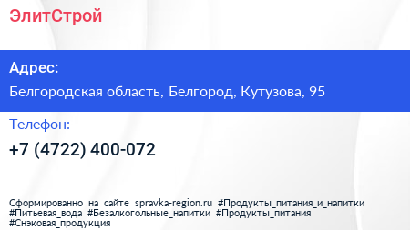 ЭлитСтрой по адресу Белгородская область, Белгород, Кутузова, 95 в дальнейшем Организация, размещена в следующих категориях: