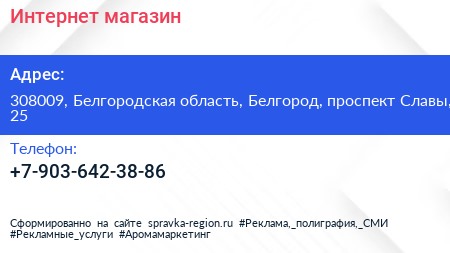 Интернет-магазин по адресу 308009, Белгородская область, Белгород, проспект Славы, 25 в дальнейшем Организация, размещена в следующих категориях:
