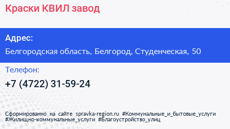Краски КВИЛ, завод по адресу Белгородская область, Белгород, Студенческая, 50 в дальнейшем Организация, размещена в следующих категориях: