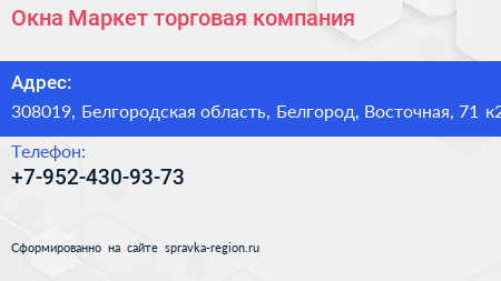 Окна Маркет, торговая компания по адресу 308019, Белгородская область, Белгород, Восточная, 71 к2 в дальнейшем Организация, размещена в следующих категориях: