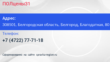 ПОЛцены31 по адресу 308501, Белгородская область, Белгород, Благодатная, 80 в дальнейшем Организация, размещена в следующих категориях: