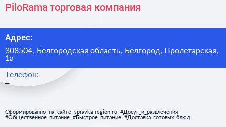 PiloRama, торговая компания по адресу 308504, Белгородская область, Белгород, Пролетарская, 1а в дальнейшем Организация, размещена в следующих категориях: