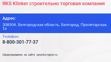 RKS Klinker, строительно-торговая компания по адресу 308504, Белгородская область, Белгород, Пролетарская, 1а в дальнейшем Организация, размещена в следующих категориях: