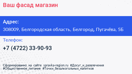 Ваш фасад, магазин по адресу 308009, Белгородская область, Белгород, Пугачёва, 5Б в дальнейшем Организация, размещена в следующих категориях: