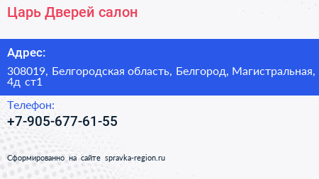 Царь Дверей, салон по адресу 308019, Белгородская область, Белгород, Магистральная, 4д ст1 в дальнейшем Организация, размещена в следующих категориях: